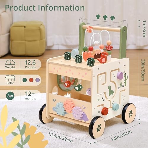 Sturdy & Safe Dino Walker: Built with premium natural wood and non-toxic water-based paint. The height-adjustable handle grows with your child, ensuring long-lasting fun through every developmental stage