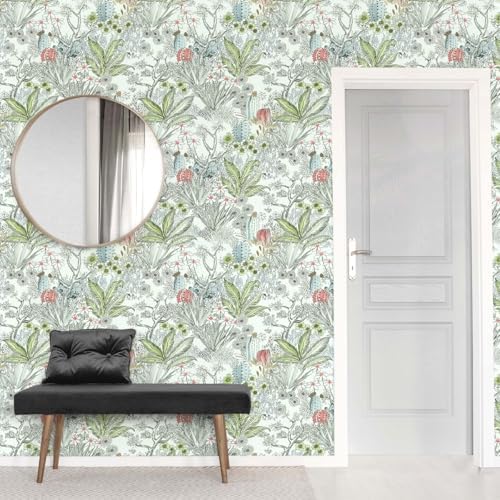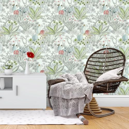 Floral Peel and Stick Wallpaper – [SIZE & DESIGN]:17.7inch×118.1inch≈14.5 sq.ft. Renter friendly and temporary boho wallpaper for apartments. The overall design concept of the wallpaper is green “flowers and plants”, this vintage peel and stick wallpaper has a lot of lovely flowers and leaves, such as cactus, wildflowers, etc., exquisite botanical wallpaper will bring a different style to your home.