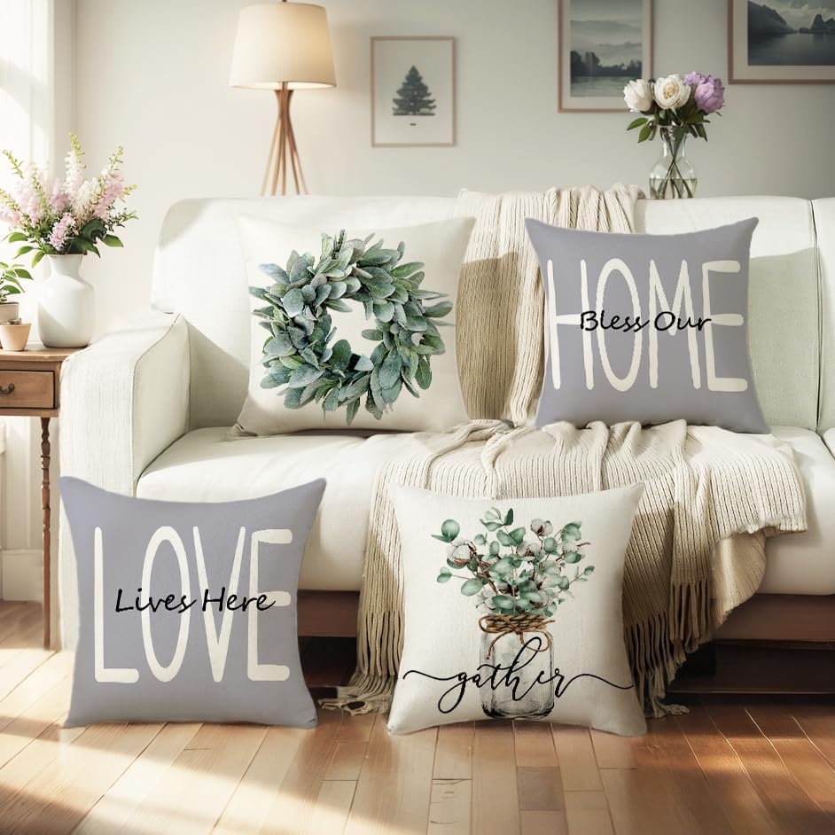 wyooxoo Throw Pillow Covers 16×16 Set of 4 Farmhouse Pillow Covers Grey Cushion Cases Decorative Pillowcases for Sofa Couch Living Room Outdoor Home Decor