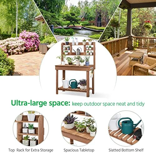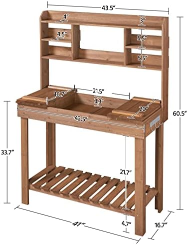 Firwood x Iron: Firwood and iron are adopted to craft this gardening table for horticulture. It is suggested to choose the garden work bench made from natural wood as it is safer for planting edible leaves such as vegetables and herbs