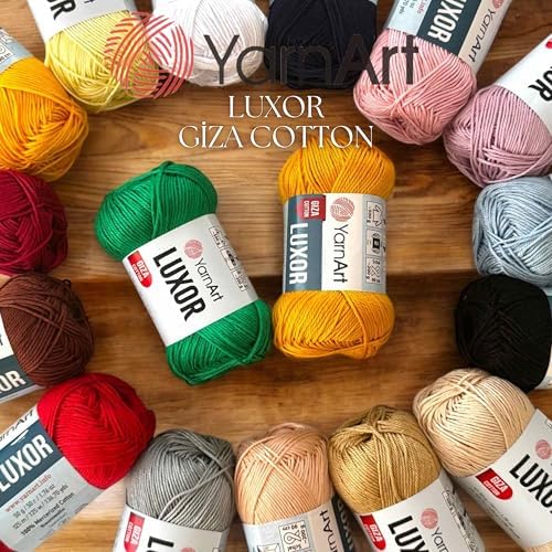 YarnArt Luxor is a premium mercerized cotton yarn made from the luxurious Giza cotton, renowned for its silky texture, strength, and radiant sheen. With its smooth surface and vivid color options, Luxor is a top choice for summer garments, elegant accessories, amigurumi toys, and baby items. Each 50g skein provides 125 meters (136 yards) of lightweight yarn, offering both durability and breathability. Ideal for knitting and crocheting, this yarn glides effortlessly on 3.5 mm needles and hooks, making it suitable for detailed work and stylish seasonal projects. Bring elegance and softness to every stitch with YarnArt Luxor.