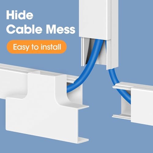 Kit Content: Each cable raceway comes with dimensions of 0.57 inch inner height, 0.96 inch inner width, ensuring a total length of 116 inches. The cable cover channel kit includes 6 couplings, 2 L-elbows, 1 T-fattings & 1 instruction, for maximum cable concealment