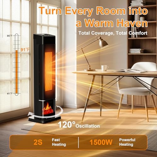 🔥 Wide-Angle Oscillation & Precision Temperature Control: The 120° oscillation system ensures even heat distribution, eliminating cold spots for consistent whole-room coverage. With an adjustable thermostat ranging from 41°F to 95°F, the unit intelligently maintains your selected temperature, enhancing comfort while minimizing energy consumption.