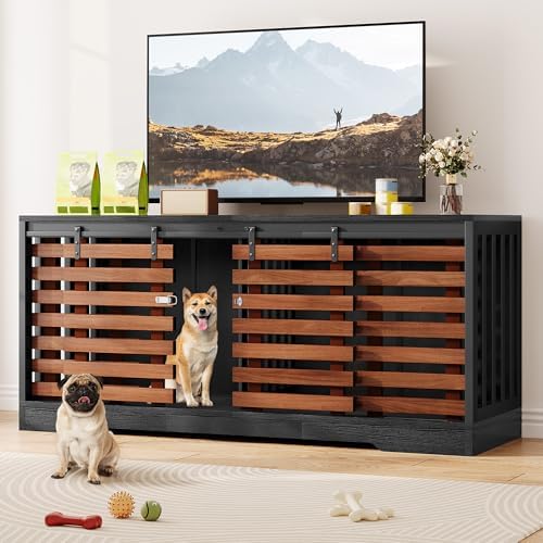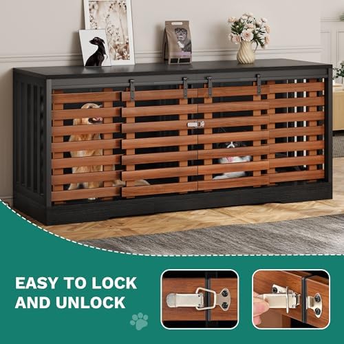 Dog Crate for 2 Dogs: Upgrade your furry friends’ comfort. Our spacious dog crate furniture, featuring dimensions of 70.87″L×31.50″Hx23.62″W, easily accommodates medium to large dogs, offering a well-crafted, safe, and cozy space they’ll love indoors