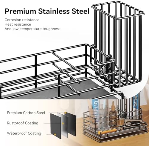 Anti Slip Sink Rack: Our sink caddy will not slide and can be fixed for a long time without worrying about the sliding and stability of this kitchen sink storage rack.