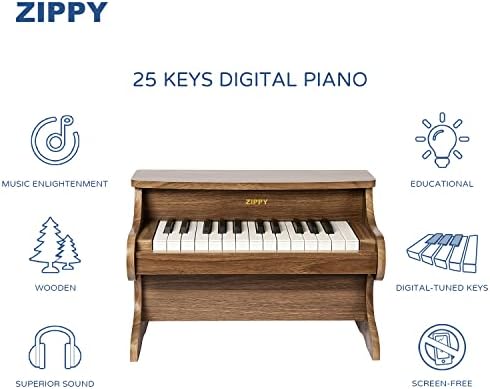 【25 KEYS DIGITAL PIANO】This ZIPPY piano is a miniature upright wooden piano that features 25 keys and 2 full octaves and offers an ideal introduction to music and help children transition to a full-size piano as they grow in age and experience. The sounds are made electronically with precision to eliminate the need for hand-tuning.