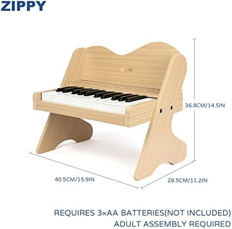 【25 KEYS DIGITAL PIANO】This ZIPPY piano is a miniature upright wooden piano that features 25 keys and 2 full octaves and offers an ideal introduction to music and help children transition to a full-size piano as they grow in age and experience. The sounds are made electronically with precision to eliminate the need for hand-tuning.